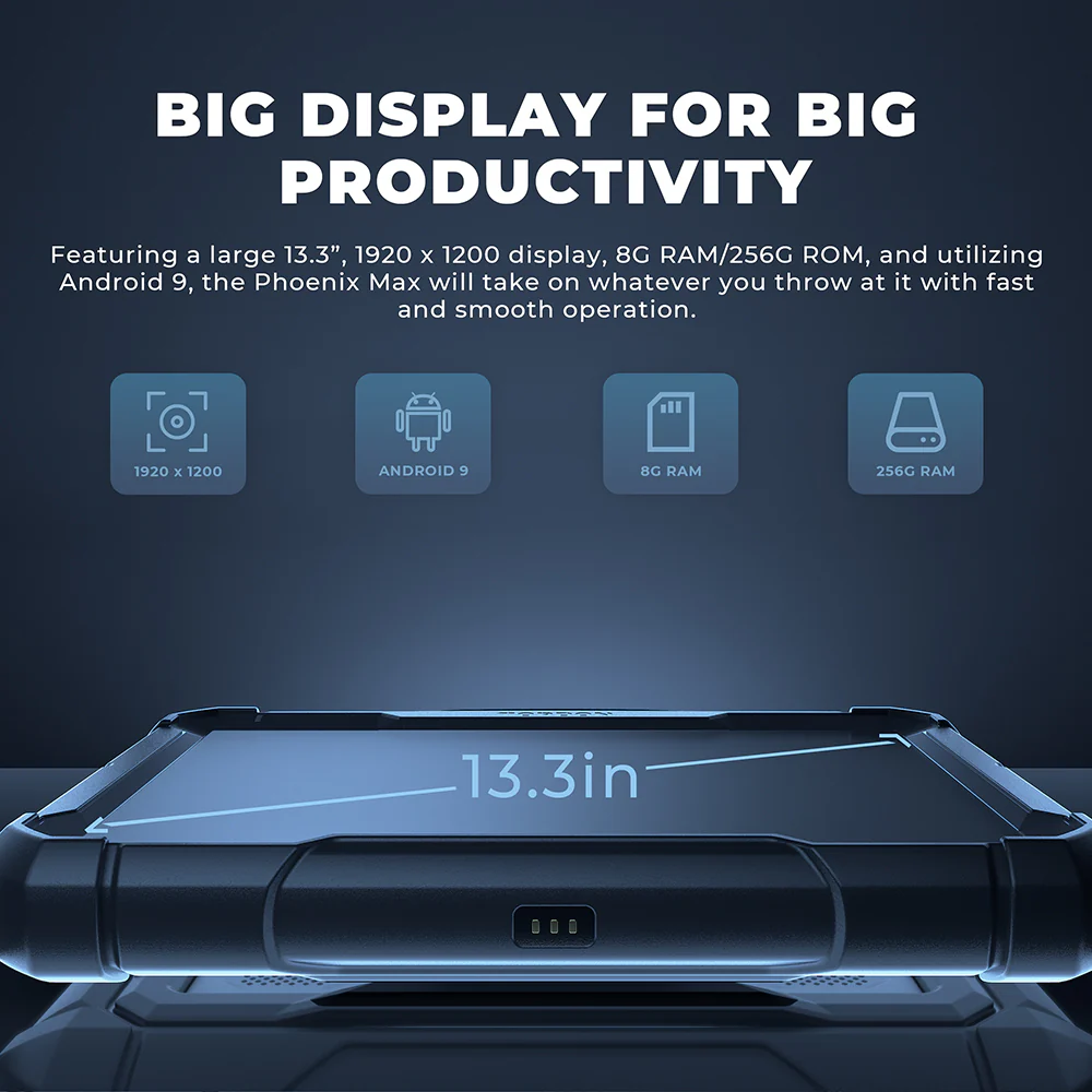 Διαθέτοντας μια μεγάλη οθόνη 13,3”, 1920 x 1200, 8G RAM/256G ROM, και χρησιμοποιώντας Android 9, το Phoenix Max θα αντιμετωπίσει ό,τι του ρίξετε με γρήγορη και ομαλή λειτουργία.